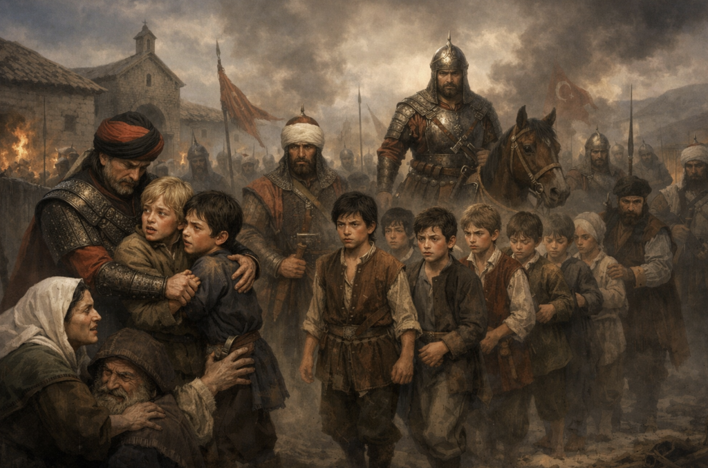 十四世纪末,随着奥斯曼帝国的版图不断扩张,这一制度逐渐走向高度制度化。方式简单,却残酷无比:帝国官员穿行于巴尔干、希腊、塞尔维亚、保加利亚、阿尔巴尼亚各地的基督教村庄,挑选男孩,将他们带走。